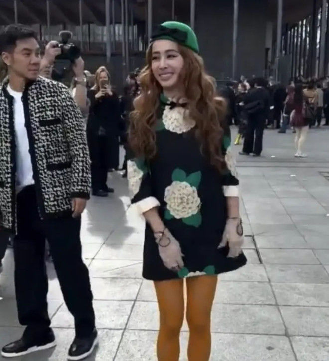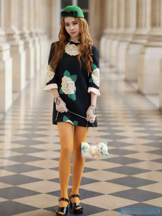 圈的冒险家。从《舞娘》时期的金属环装到《大艺术家》的复古造型,她每次出场都能精准踩中潮流痛点。但这次巴黎时装周的一身look,却让网友直呼”看不懂”——春日感刺绣短裙配00年代厚底鞋,再套上这双土色丝袜,仿佛把奶奶家的衣橱和Y2K元素来了场魔幻联动。