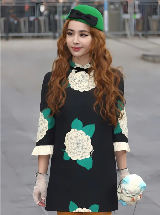 上半身是文艺复兴时期的宫廷画,下半身却像误入城中村理发店。最抓马的当属那顶绿色贝雷帽!在红毯一片黑金白的主色调中,这抹绿显得格外突兀。虽然环保主题很加分,但和整体造型的割裂感实在让人费解。更别提那双厚底鞋,瞬间变成了”踩高跷”既视感。