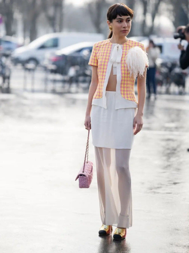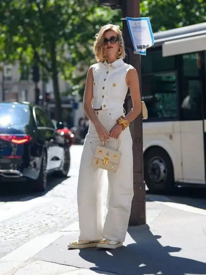 搭配牛仔裤或碎花连衣裙,能带出一种带着随意感的讲究,不会过于正式,但看起来依然有细节。