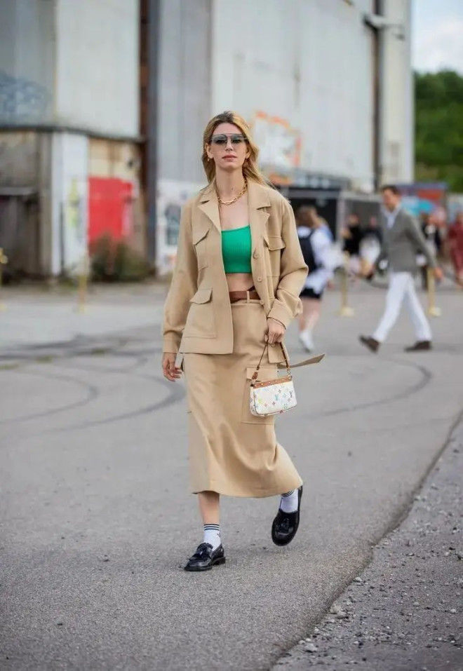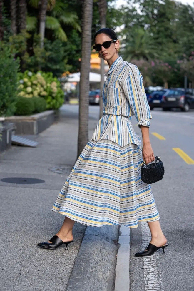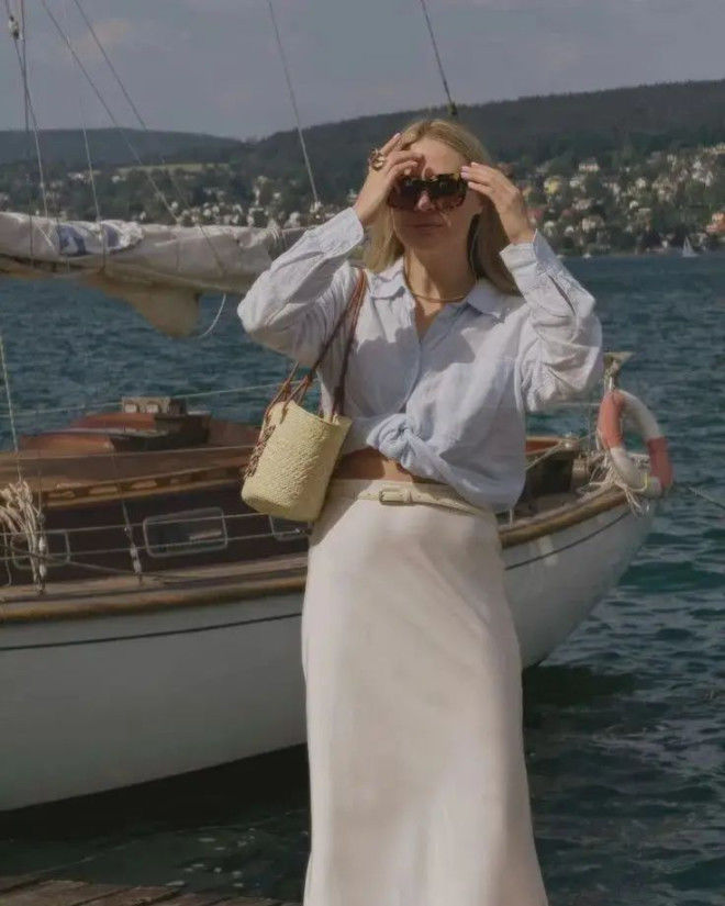 在搭配上,要注意避免材质上的冲突,比如不太建议与闪光感太强的缎面裙搭配。更适合与棉质、亚麻、针织这类自然面料组合,才能统一穿搭调性。