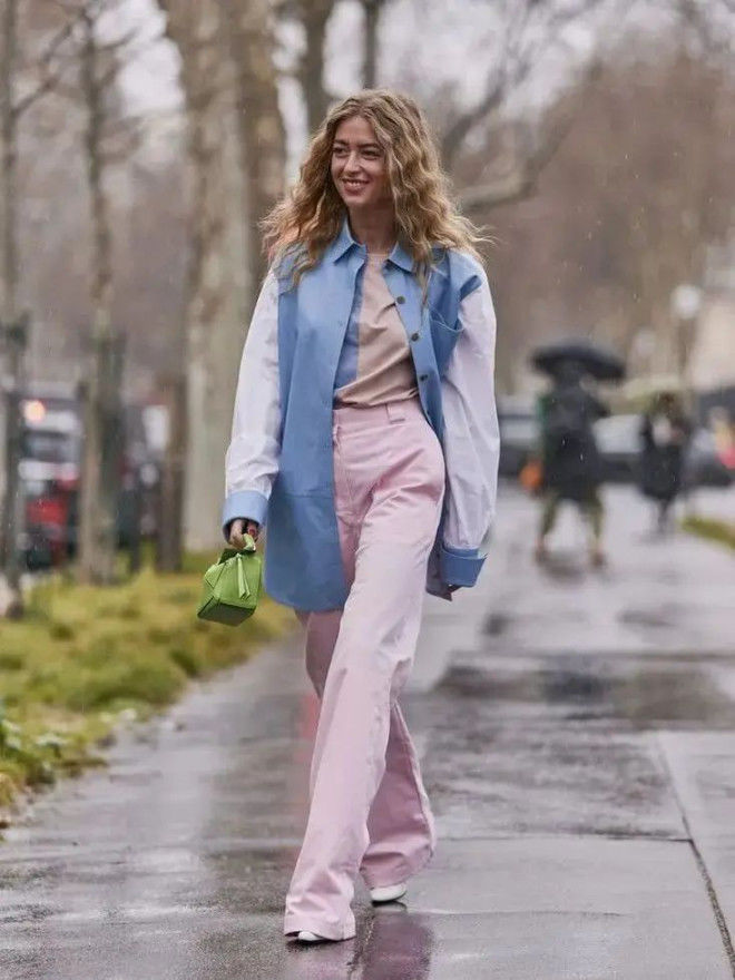 蓝色干净柔和,搭配牛仔单品或浅色系连衣裙,有种不动声色的清爽干净气息。