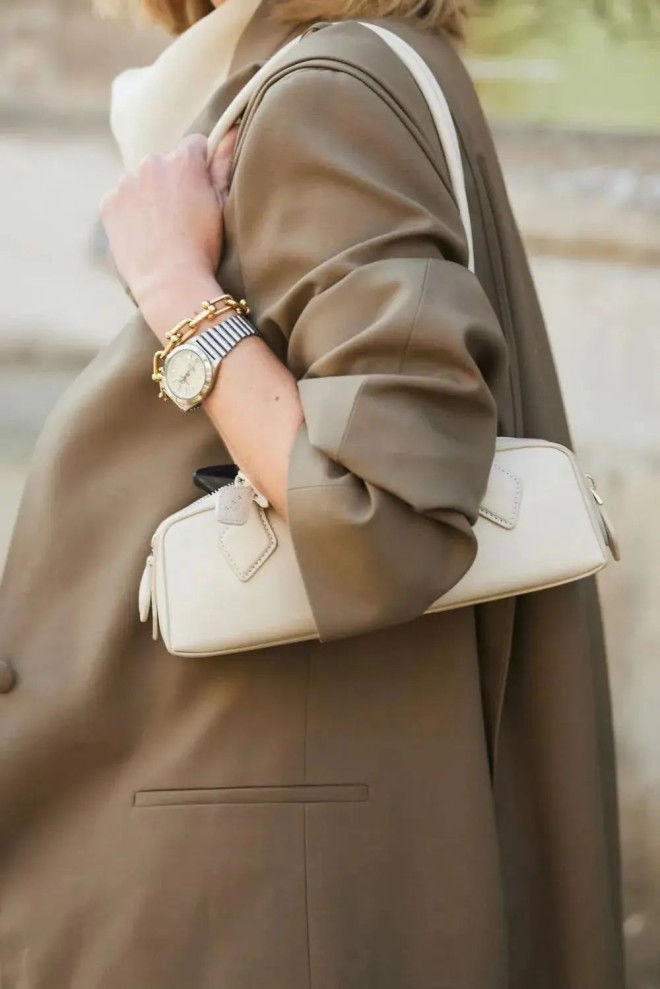 米白、奶油色、浅灰等浅色包,特别适合春夏的优雅穿搭。