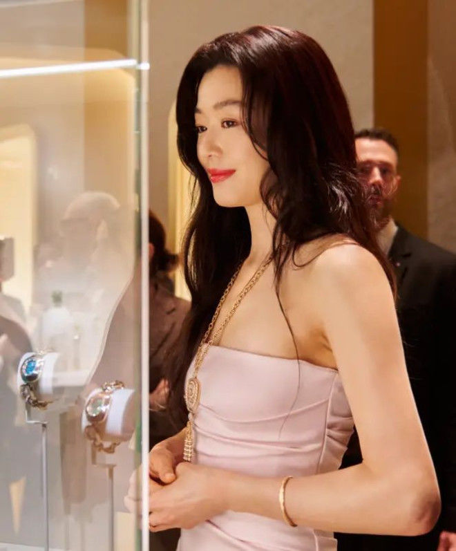来到表展现场,全智贤的穿搭则从休闲变为华美,身穿Alex Perry 粉色长裙,搭配全新Sixtie鎏金悦影系列高级珠宝坠饰时计项链,奢雅之源高级珠宝耳坠,以及Possession时来运转系列珠宝。