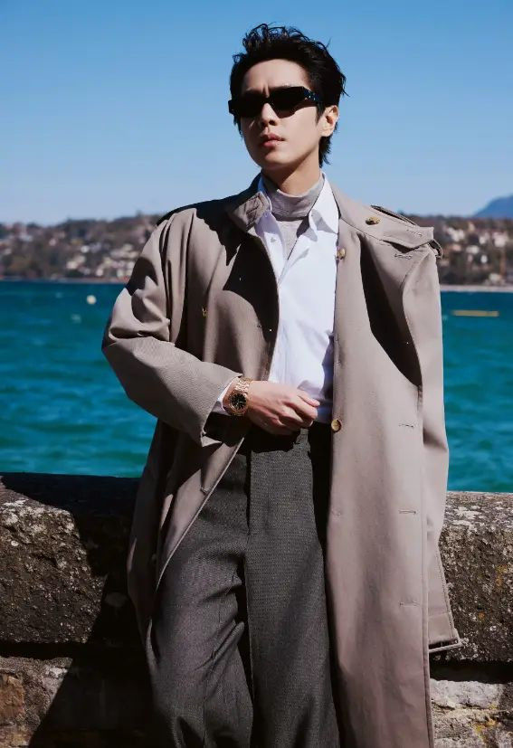 当然,来到瑞士的张若昀,也不会错过到户外走走的机会,来看看他在日内瓦的山水间是怎样展示自己的风格的。可以是用风衣搭配金色的全新工程师自动腕表40。