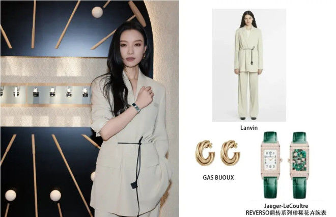 与倪妮同台争艳的,则是以积家全球代言人身份出席的演员倪妮,以一袭利落的LAVIN米色西服套装,佩戴积家REVERSO翻转系列珍稀花卉腕表,珐琅花卉轻绽于腕间,在不断地翻转之间展现时光艺术的细腻与诗意。