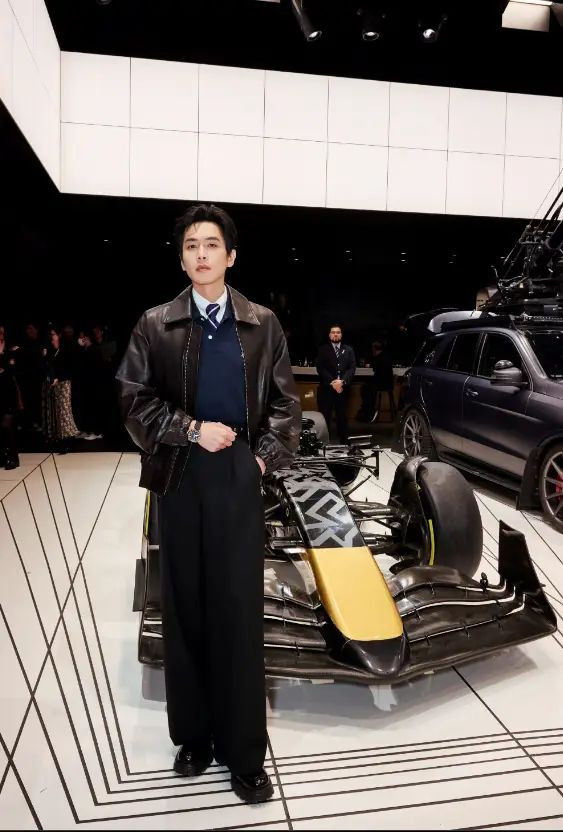 也可以换上皮衣与F1的赛车进行合影,只能说这样潇洒型格的张若昀,与飞驰的赛车不要太搭、
