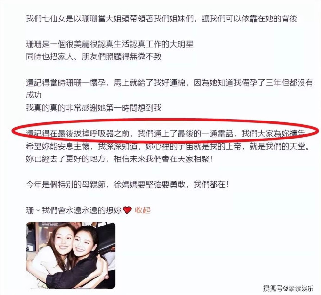 同时每一位朋友在缅怀悼念大S的发文最后,都会感谢徐妈,希望她也好起来。