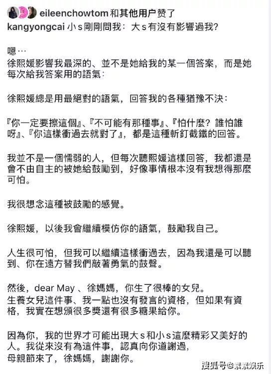 小S号召大家发文,也是希望妈妈能看到这一切,身边的大家都是超级暖心,大家的发文可以做到让妈妈的悲伤能越来越小。