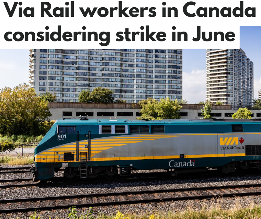 维亚铁路(VIA Rail)再一次驶入劳资冲突的隧道。就在本周末,代表全国超过2,500名员工的Unifor工会以压倒性的97.5%投票通过了罢工授权。如果谈判破裂,这场可能导致全国铁路运输系统瘫痪的罢工,最快将在6月22日正式爆发。