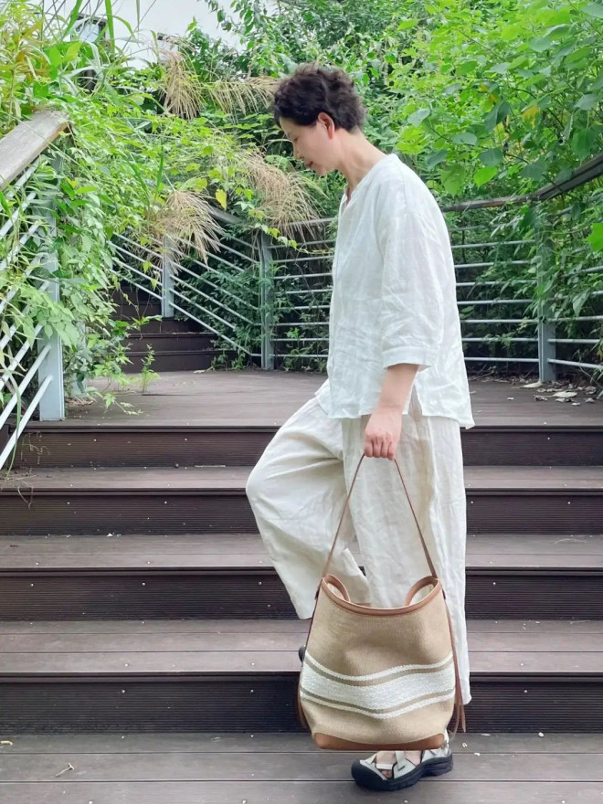 此外,在挑选单品款式时,材质也很重要。棉麻、轻纱、针织等材质都很适合50岁女性,既轻盈温柔和舒适,又不会给人廉价感。