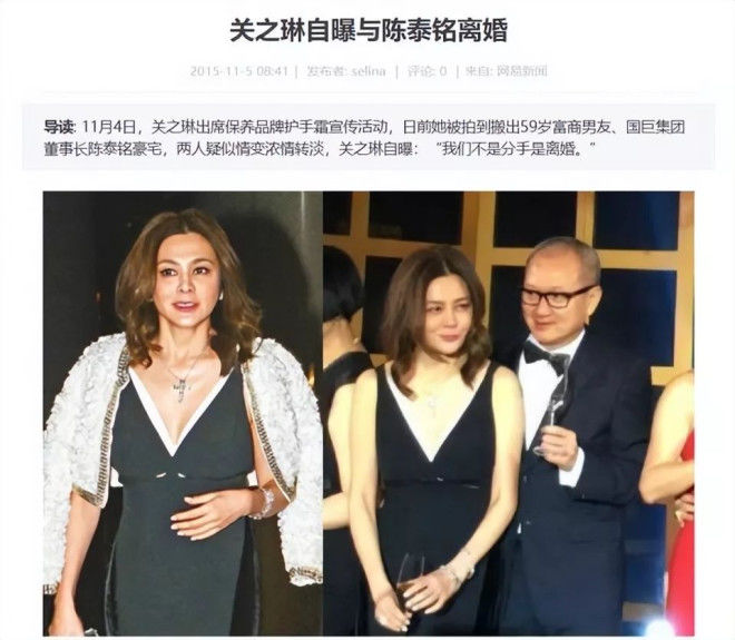 时间很快来到2015年,关之琳忽然自曝与陈泰铭离婚。