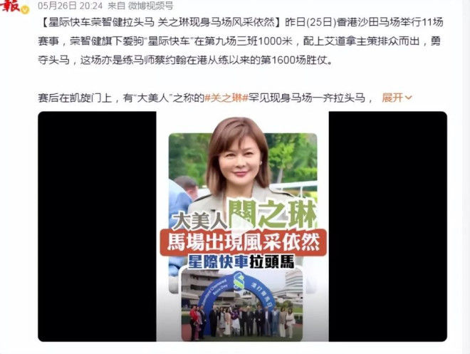 前几天,许久未曾露面的香港老牌艺人关之琳,忽然现身赛马活动,引发关注。