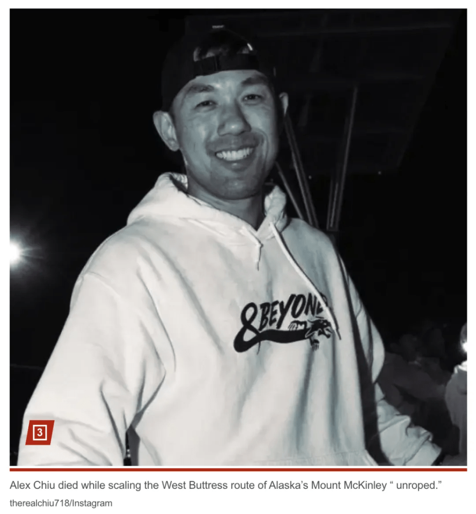 41岁的邱亚历克斯(Alex Chiu),美籍华人航空工程师,本周在攀登德纳里著名的“西脊路线”时不幸坠崖,身亡。他的遗体在恶劣天气中被搜救人员于6月5日成功找回。消息一出,震动了美国西海岸的登山社群,尤其是在西雅图——他曾经生活、训练并启发无数年轻人踏入户外世界的城市。