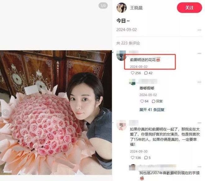 女方每次发鲜花、蛋糕等照片,评论区也都是清一色的“俞灏明”。