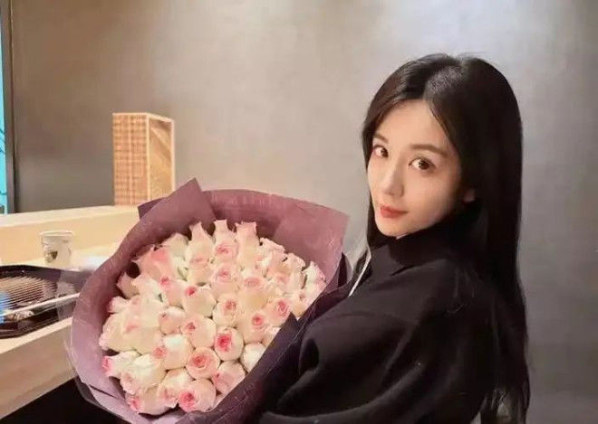 3月份的时候王晓晨还在晒一大捧玫瑰花。