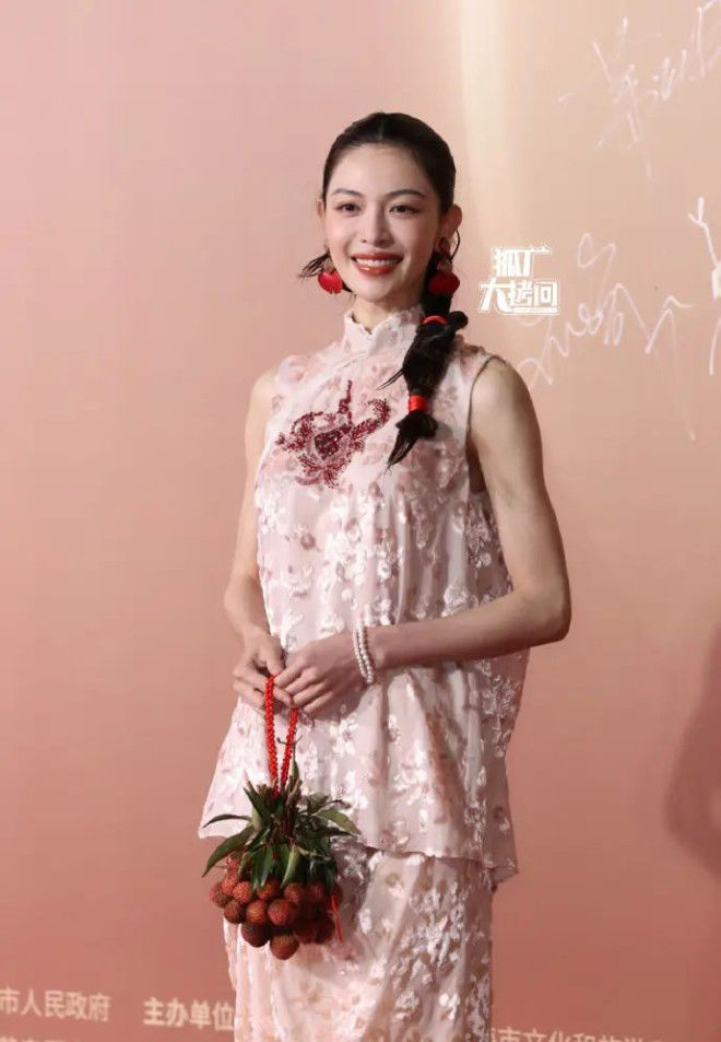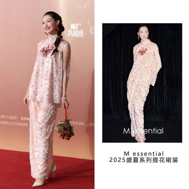 同样穿M essential的还有钟楚曦,2025盛夏系列手工石榴刺绣装新中式套装上身,将东方美与她现代摩登的气质完美结合,手拎“荔枝手包”,举手投足间将岭南美人的韵味呈现得淋漓尽致。