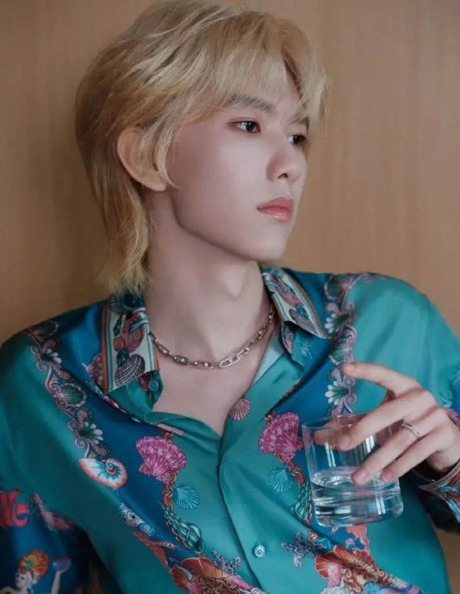 马柏全真的好有可塑性,原本清新阳光的他,身穿Versace夏日度假系列印花衬衫,配着一头金发,竟然也能完美匹配,妥妥的雅痞贵公子形象。