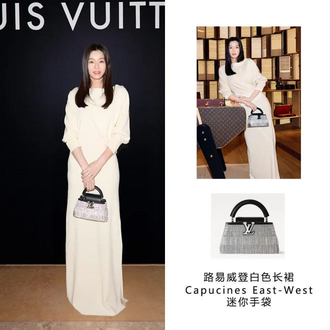 本周全智贤身着路易威登出席品牌澳门四季名店专卖店开幕活动,米白色连衣裙,裙身饰有泡泡袖及开叉下摆设计,简约雅致,搭配黑色高跟鞋并携Capucines East-West迷你手袋亮相,让素雅的LOOK增添亮点,贵气十足。