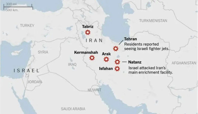 以色列国防军发言人埃菲·戴弗林表示,凌晨以军共出动超过200架战机,发动了5轮袭击,共投下330多枚弹药,打死了伊朗高级军事领导人以及其他指挥官,对伊朗境内25个与核计划及军事设施相关的目标实施了多波次打击。