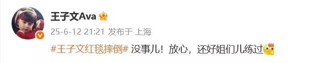 6月12日王子文在“中国时尚产业盛典”红毯摔倒事件引发关注。