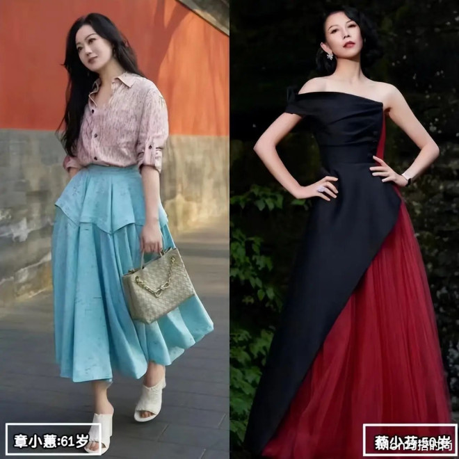 会打扮的中年人,如61岁的章小蕙,用甜美褶皱裙配bv链条包,名媛范儿十足;如50岁的蔡少芬,穿礼服戴鸽子蛋钻石戒指,宛若黑天鹅……