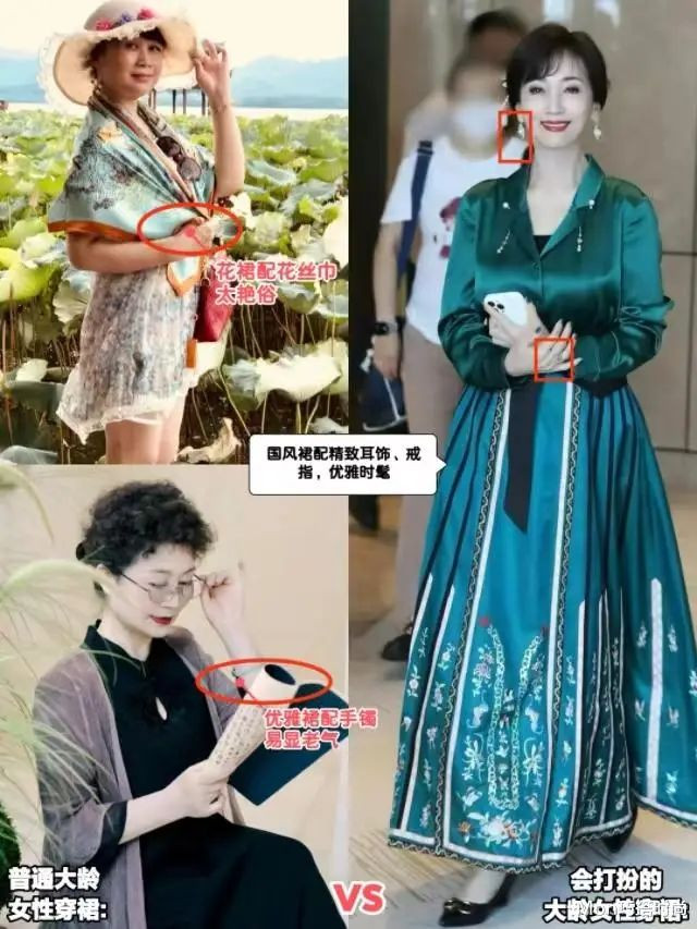 等你到了五六十岁,穿裙不仅要少碰手镯、丝巾,最重要的是——选合适的配饰。配饰选错,是画蛇添足、白费功夫,甚至还会“帮倒忙”……