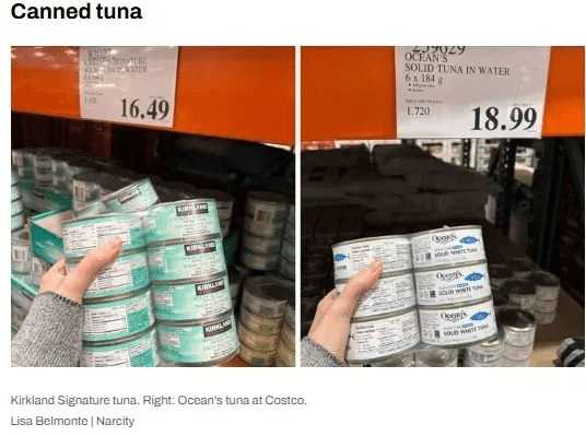 数据显示,Kirkland Signature的部分商品在价格上远低于传统名牌。例如,两罐Kirkland榛子酱仅售13.49加元,折合每100克仅0.67加元,而Nutella同类产品在Loblaws价格高达每100克1.39加元,几乎翻倍。这一“同质低价”策略,使得Kirkland不仅吸引预算有限的家庭,也成为追求理性消费的中产新宠。