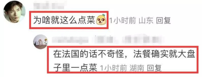 此外,还有不少网友的关注点落在了桌上的饭菜上,虽然大家身在法国,但大家聚会的包间却充满中国元素,例如墙壁上挂着中国传统剪纸画幅。