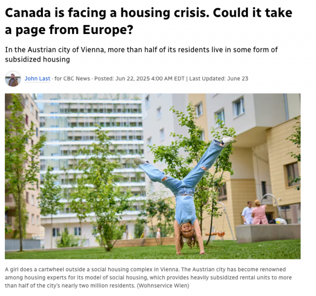 住房是个人资产,也是公共基础设施。维也纳模式的核心并不在于巨额补贴本身,而在于政府、金融与非营利板块共同承担风险、共享红利的“成本社会化”框架。对加拿大而言,若真要把住房视作医疗、教育和养老金之外的“第四根社会支柱”,改革便不能停留在微调税率或一次性补贴——而需重塑土地、金融与权责体系,让“住有所居”不再是统计学意义上的奢望,而是国民可以触碰的日常。