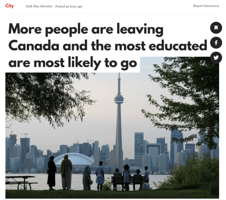 加拿大统计局最新报告指出,仅2025年第一季度,就有超过2.7万人永久离开了加拿大。这一数字不仅比去年同期增长了3%,更是自2017年以来第一季度的第二高水平。而令人警惕的是,在这场“人口逆流”中,高素质人群成为主力军。
