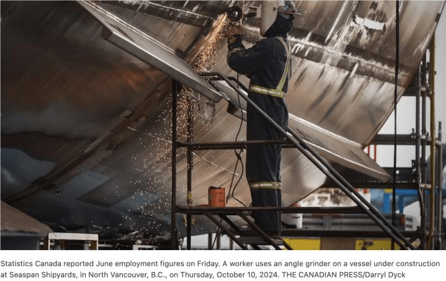 加拿大6月就业数据大幅超出市场预期,显示在高利率和对美贸易不确定性双重压力下,加国劳动力市场依然韧性十足。分析人士警告,意外强劲的数据可能促使加拿大央行重新审视月底的降息路径。