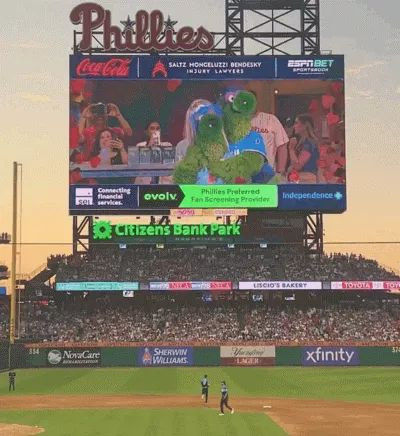 包括美国职棒联盟最近的一场比赛,费城队的两个吉祥物官方玩梗: