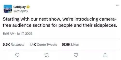 社交媒体流传着一个截图,表面上是酷玩发的,说以后再开巡演,会单独开辟一个“无KissCam区”,方便大家和自己的那啥,那啥……