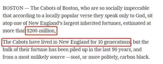 早在1972年,《纽约时报》就对Cabot家族做过专访,那时他家的财富就超过了2亿美元——那可是70年代的2亿,换算到今天,大约是154亿美元。