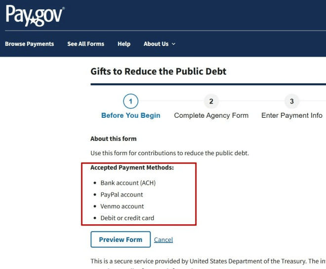 美国国债持续攀升,债务规模已经突破36万亿美元,创下历史新高。7月初,由总统川普签署生效的“巨额税收与支出法案”更使财政赤字风险加剧。面对这一严峻局面,美国财政部近日悄然上线了“用捐款偿还美国国债”的在线捐赠平台,增设了Venmo和PayPal两大普及支付渠道,鼓励民众通过“自愿捐款”帮助联邦政府缓解债务压力。