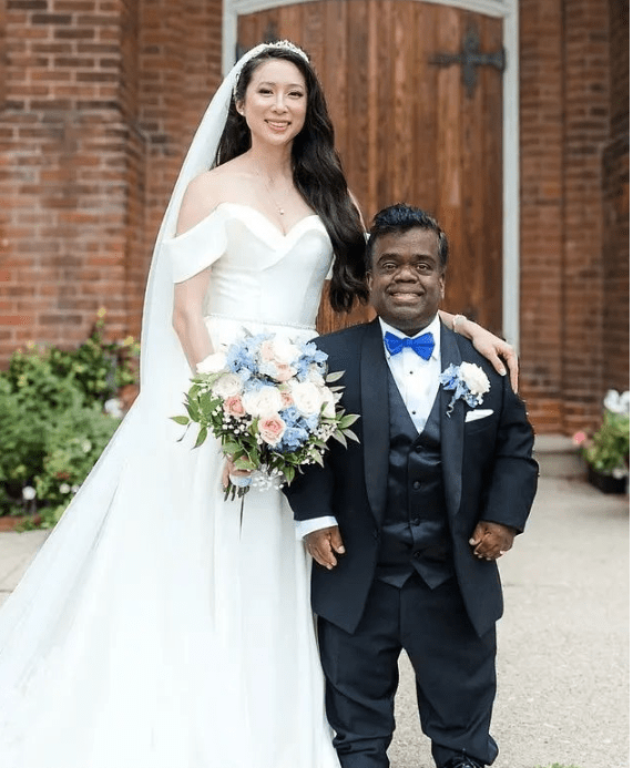 在一张看似AI生成的婚纱照中,一位身着白纱的华裔女子挽着一位身高明显矮于她的黑人男子,笑容灿烂。这不是Photoshop的作品,也不是社交媒体的玩笑,而是真实发生在加拿大多伦多的一段爱情。