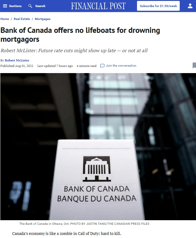 2025年夏季,加拿大房地产市场陷入一种奇怪的停滞:价格尚未崩塌,交易量低迷,房主们的呼吸越来越短促,却等不到那场久违的“降息甘霖”。加拿大央行却像守株待兔的猎人,只注视着通胀数据的起伏,丝毫不为市场的哀鸣所动。
