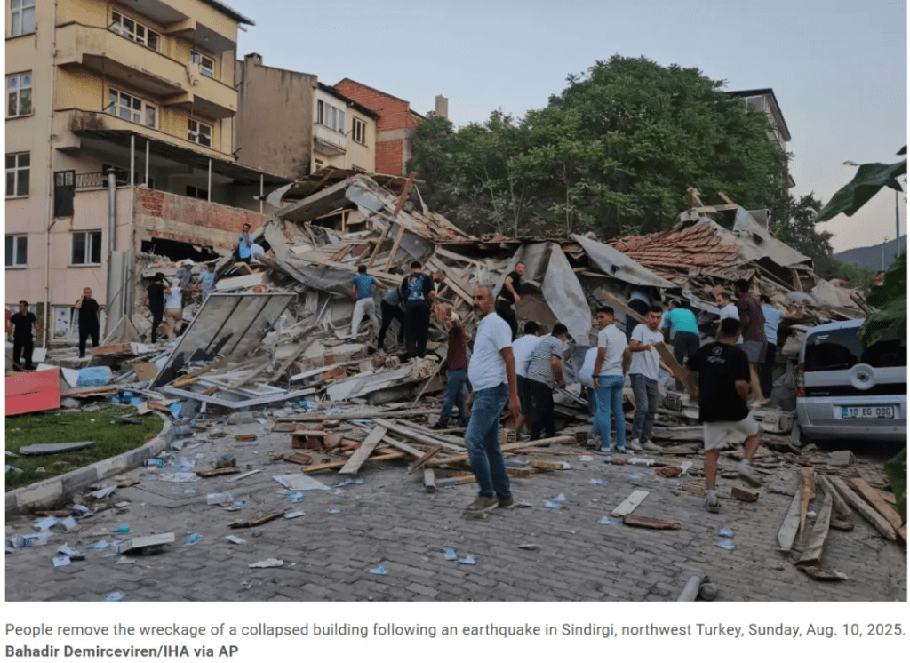 土耳其西北部8月10日晚发生6.1级地震,造成至少1人死亡、29人受伤,16栋建筑倒塌。这是继俄罗斯堪察加半岛8.8级地震仅12天后,全球主要地震带再次发生强震,引发对其他高风险地区的担忧,包括位于环太平洋火山带的加拿大不列颠哥伦比亚省(卑诗省)。