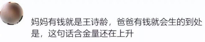 甚至有网友调侃说,妈妈有钱就会变成王诗龄,爸爸要是有钱,反倒会多出好多兄弟姐妹。