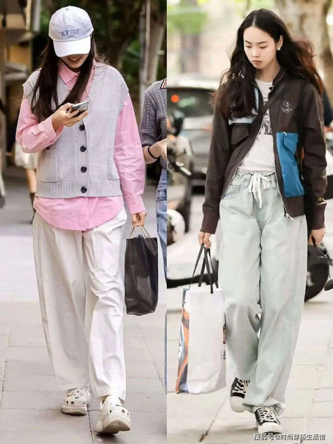 的街头就能发现,这些时髦精都在穿长裤和长裙,就算是搭配运动鞋,照样显高显腿长。