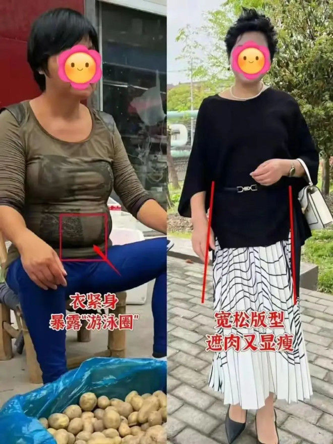 本身身材比例就没有那么好的情况下,还选择紧身款的上衣或者是紧身裤来搭配,毫无疑问会暴露游泳圈小肚腩。