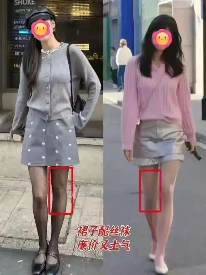 咱们就看下面这两位达人的穿搭示范,用一件针织上衣搭配上短裙,脚上再搭配上丝袜,显得廉价又土气,并没有那种高贵的气质。而且这两位达人还是比较年轻貌美的女性,可能还能驾驭得住,但换成中年女性根本穿不出这样的效果。