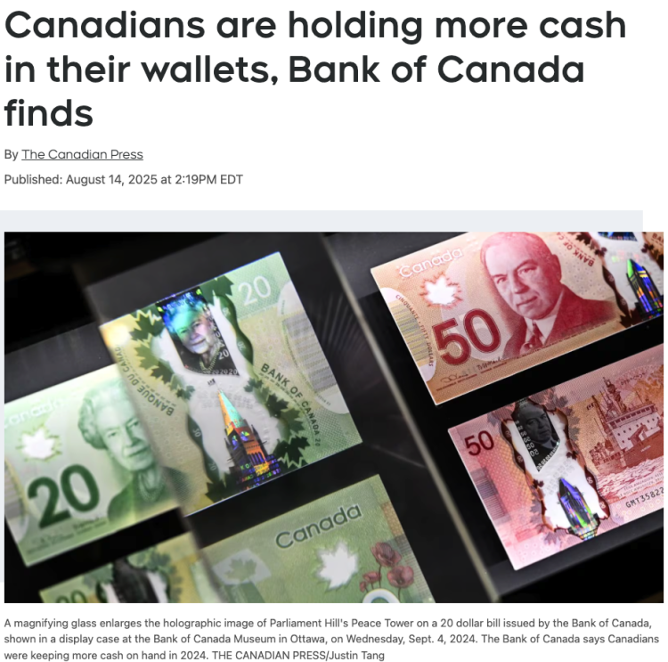 在一个几乎人人都习惯“刷卡”或“轻触支付”的加拿大,现金似乎早该退出舞台。然而,加拿大央行最新调查却揭示了一个颇具反讽意味的趋势:普通加拿大人钱包里的现金并没有减少,反而比去年更多。