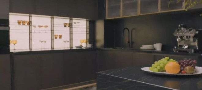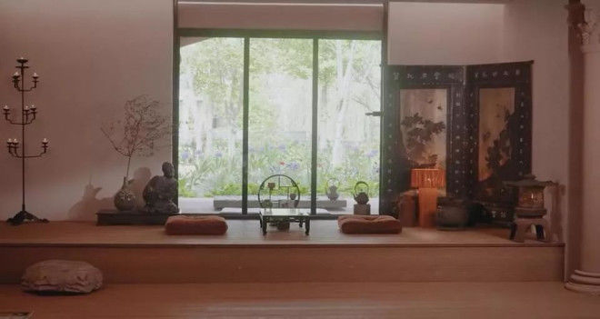厨房和茶室中西合璧,霍思燕打理得非常干净,每样东西摆放的位置都有讲究,茶室右侧的屏风也大有来头。