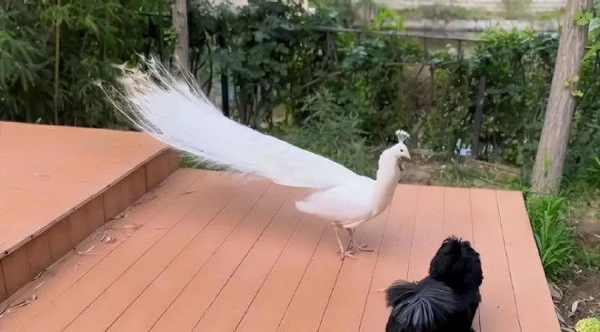 而她家的院子堪比动物园,狗狗和小兔子这些就不说了,在家里养孔雀的人应该不多见吧?而且不同颜色的孔雀好几只,这地宽到小动物们也可以随意走动。