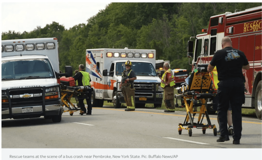 8月22日中午,一辆载有52名乘客的旅游大巴在从尼亚加拉大瀑布返回纽约市的途中,于I-90高速公路布法罗以东的彭布罗克(Pembroke)地区翻覆,造成至少5人死亡,其中包括一名儿童,另有数十人重伤,车体几近报废。