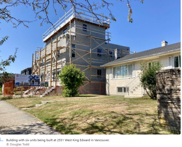 2023年,温哥华市府大幅调整分区政策,允许在原本单户独立屋地块上,直接建起4至6户的“multiplex”住宅。
