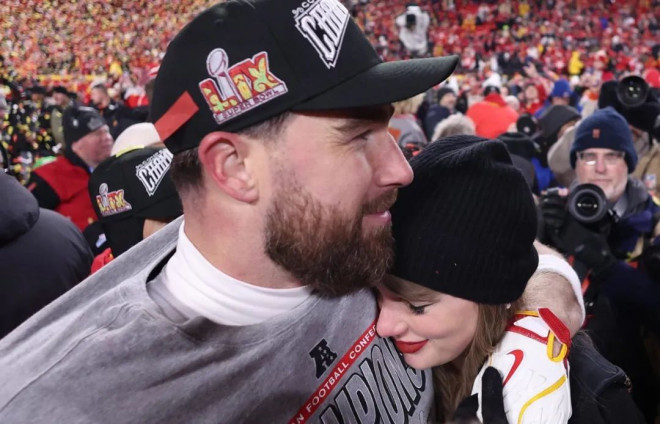 同为35岁的男友Travis Kelce求婚成功,她配文:“你的英语老师和体育老师要结婚了。”