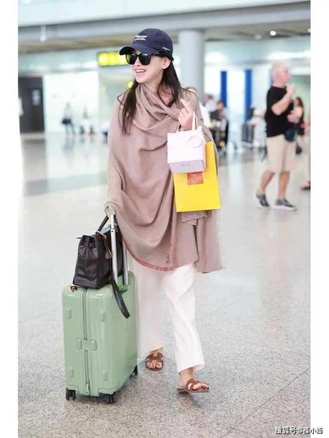 白裤子哪个季节都可穿,其具有不错的搭配性,此次与披肩组合,时尚感瞬间拉满。脚上穿了一双皮质拖鞋,其在夏季最为合适了。