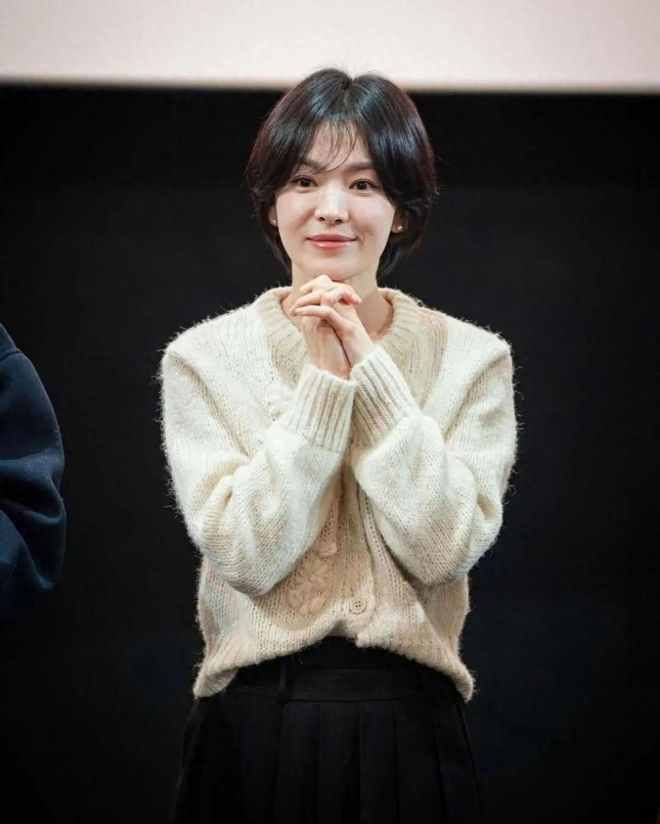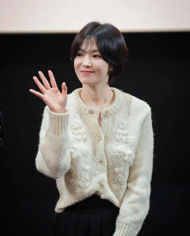 宋慧乔选择的这件米色针织开衫一下将女性温柔感散发在外,轻松拉近与其他人的距离。在设计上,选择花朵式刺绣元素,增添了一份浪漫气息。姐妹们对于这样温柔的穿搭时,会不会用长发飘飘造型来搭配呢,那就来看看宋慧乔的选择。短发造型来搭配,摆脱固有思想,这样一身搭配既显高级又起到减龄的效果。